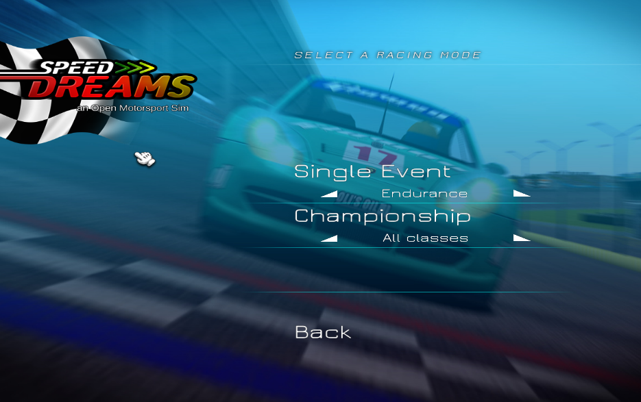 Speed Dreams features several racing modes which can be associated with various types of championships. The latest version of Speed Dreams introduced a "career" mode which gives users the possibility to play against random opponents with different car classes.