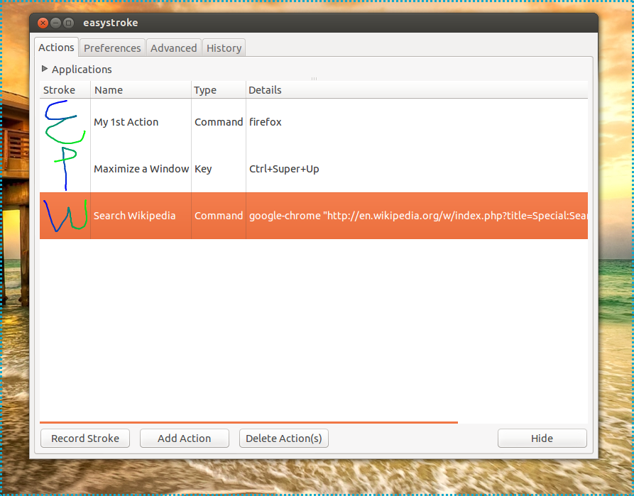 EasyStroke is a mouse gestures recognition application which is capable of associating a mouse gesture to a predefined action. It allows you to create an unlimited number of actions by recording mouse gestures which you can associate to your favorite applications.